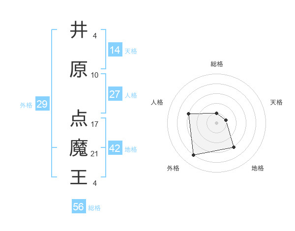 井原 点魔王さんを姓名の画数から五運を鑑定