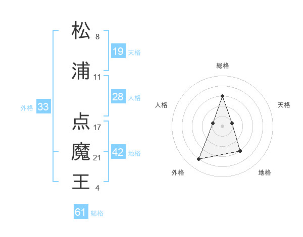 松浦 点魔王さんを姓名の画数から五運を鑑定
