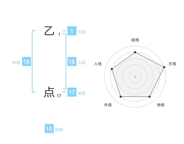 乙 点さんの天格は1画の5点!