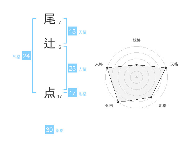 尾辻 点さんの外格は24画の5点!