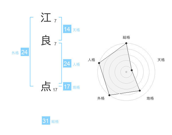 江良 点さんの総格は31画の5点!