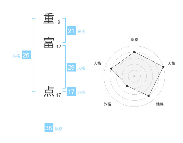 重富 点さんの総格は38画の4点!