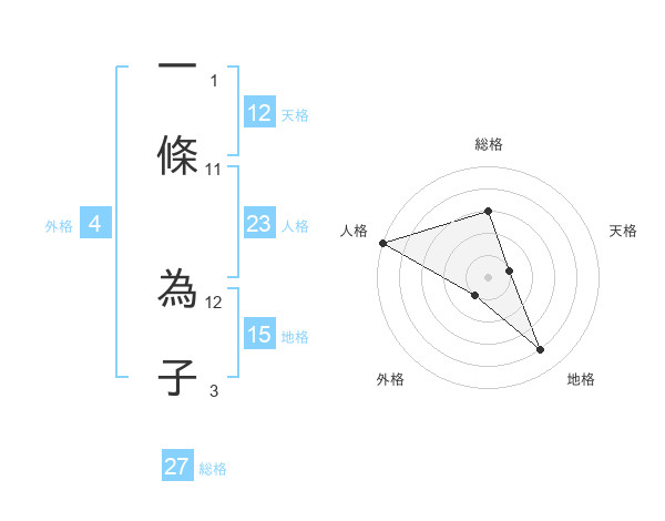 一條 為子さんの天格は12画の1点!