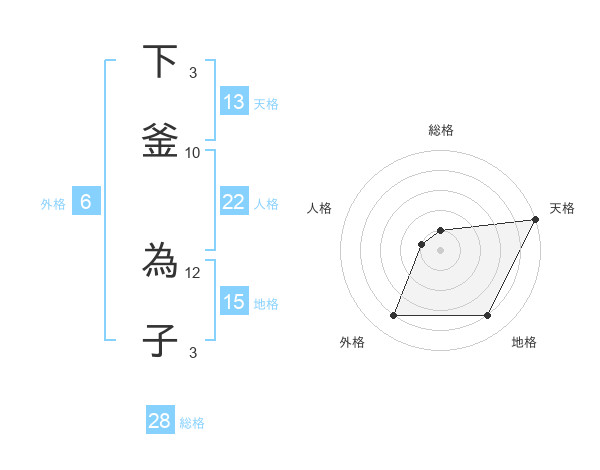 下釜 為子さんの天格は13画の5点!