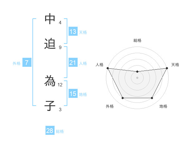 中迫 為子さんの天格は13画の5点!