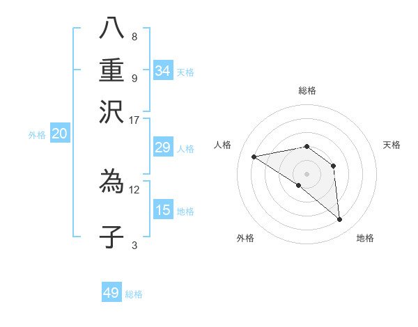 八重沢 為子さんの総格は49画の2点!