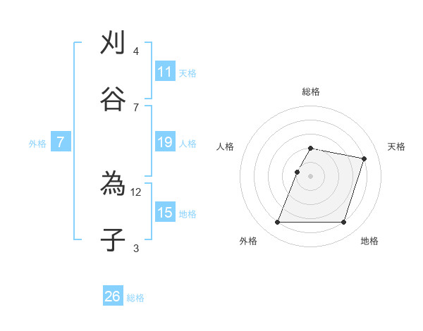 刈谷 為子さんを姓名の画数から五運を鑑定