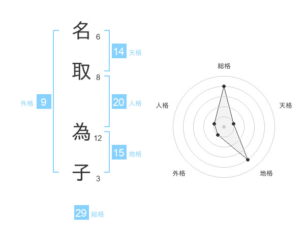 名取 為子さんの総格は29画の4点!