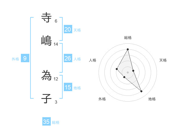 寺嶋 為子さんを姓名の画数から五運を鑑定