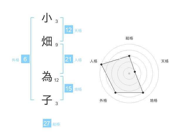 小畑 為子さんの天格は12画の1点!