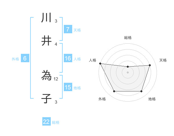 川井 為子さんの総格は22画の1点!