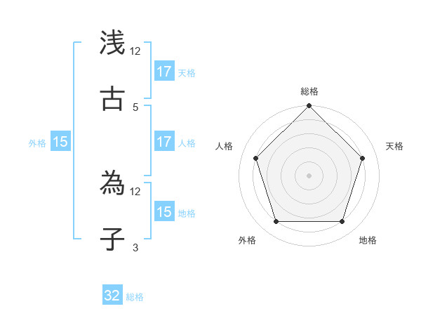 浅古 為子さんの外格は15画の4点!
