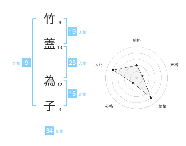 竹蓋 為子さんを姓名の画数から五運を鑑定