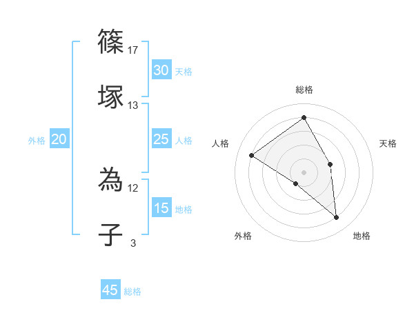 篠塚 為子さんの総格は45画の4点!