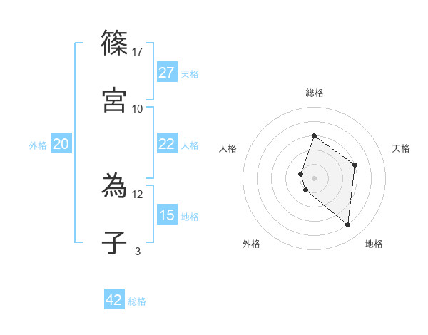 篠宮 為子さんを姓名の画数から五運を鑑定