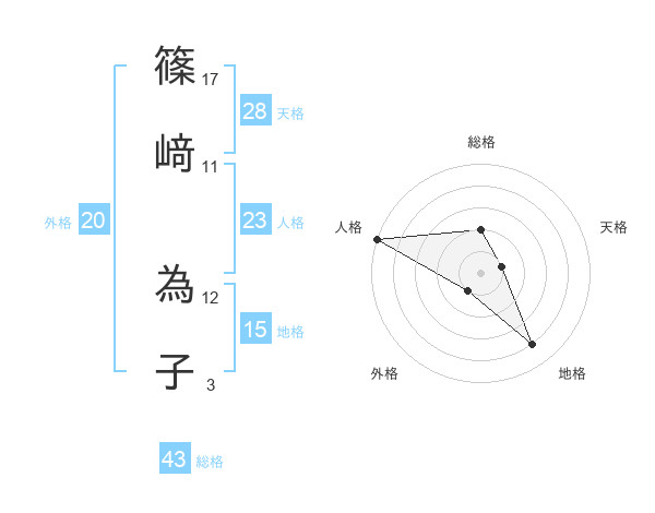 篠﨑 為子さんの人格は23画の5点!