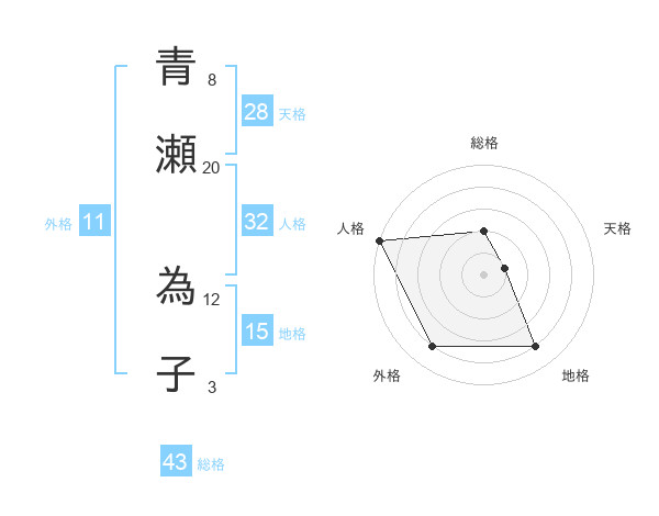 青瀬 為子さんの天格は28画の1点!