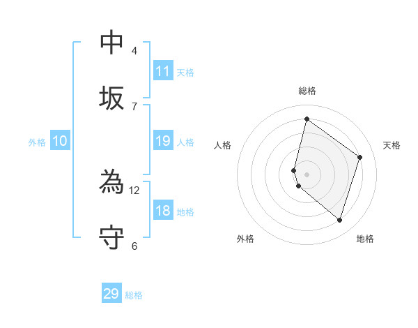 中坂 為守さんの総格は29画の4点!