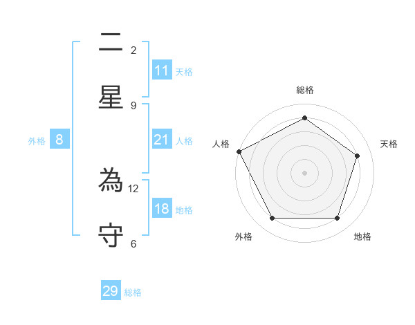 二星 為守さんの総格は29画の4点!