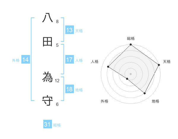八田 為守さんの総格は31画の5点!