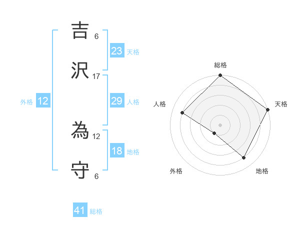 吉沢 為守さんを姓名の画数から五運を鑑定
