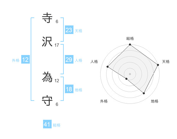 寺沢 為守さんを姓名の画数から五運を鑑定