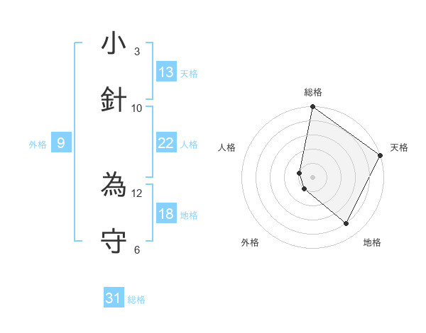 小針 為守さんの天格は13画の5点!