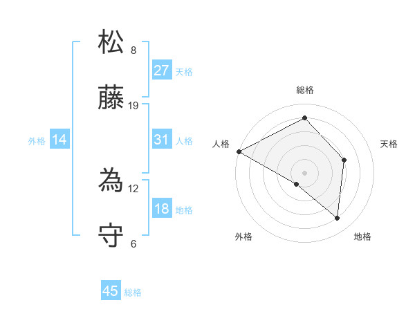 松藤 為守さんの総格は45画の4点!