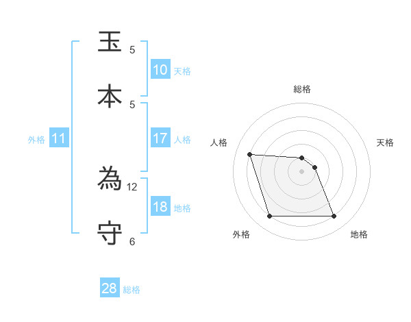 玉本 為守さんの外格は11画の4点!