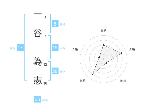 一谷 為憲さんを姓名の画数から五運を鑑定