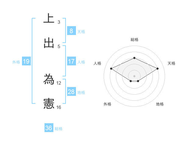 上出 為憲さんの天格は8画の4点!