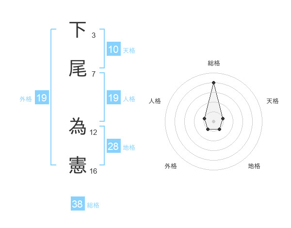 下尾 為憲さんを姓名の画数から五運を鑑定