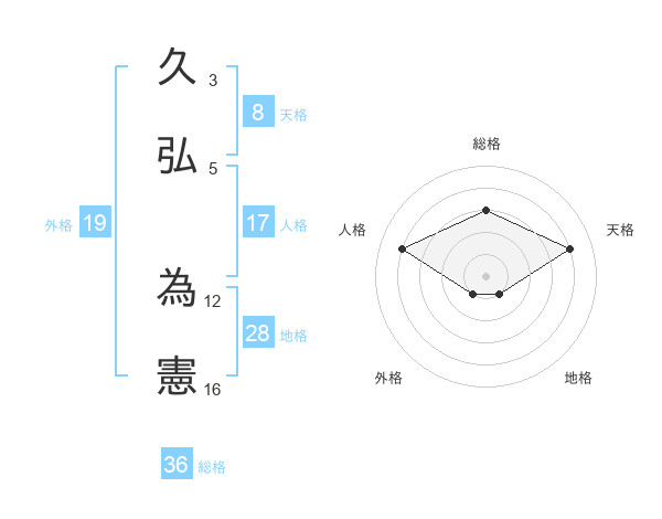久弘 為憲さんを姓名の画数から五運を鑑定