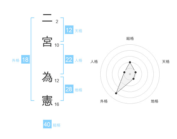 二宮 為憲さんの天格は12画の1点!