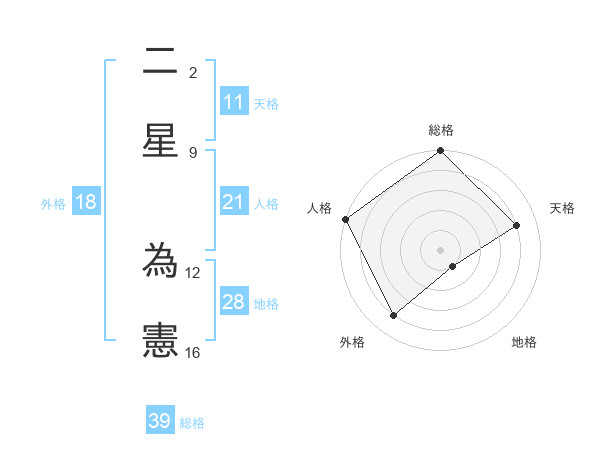 二星 為憲さんの天格は11画の4点!