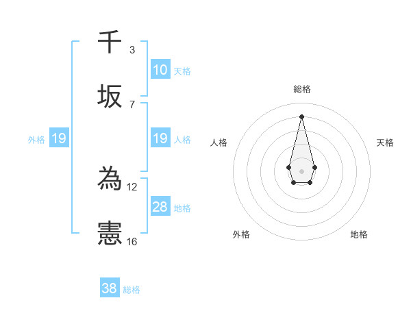 千坂 為憲さんの総格は38画の4点!