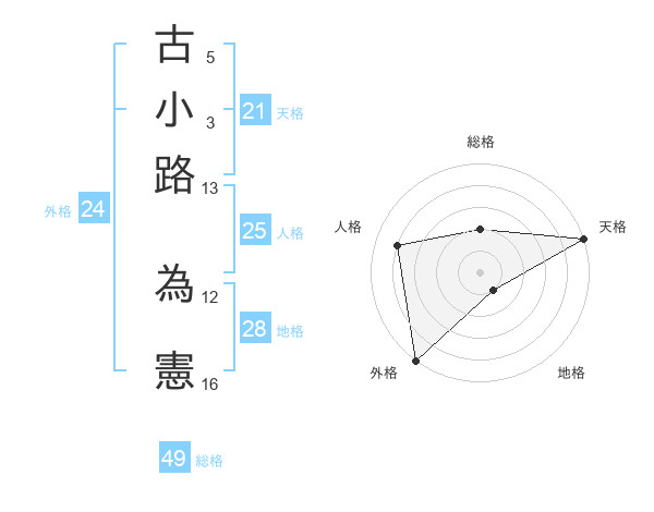 古小路 為憲さんの天格は21画の5点!
