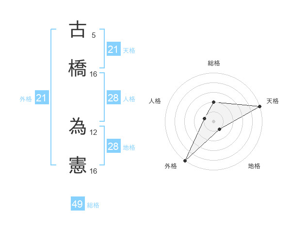 古橋 為憲さんの天格は21画の5点!