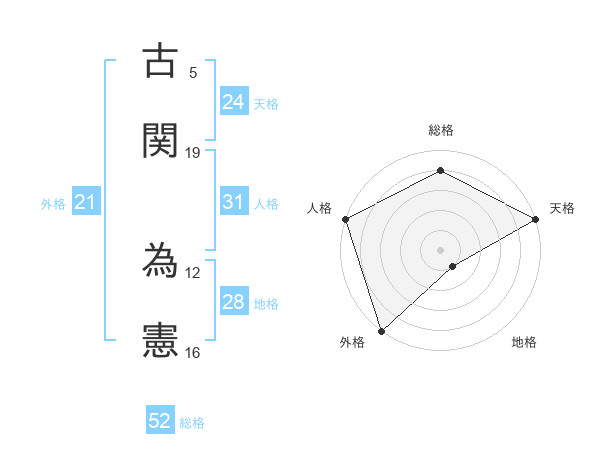 古関 為憲さんの総格は52画の4点!