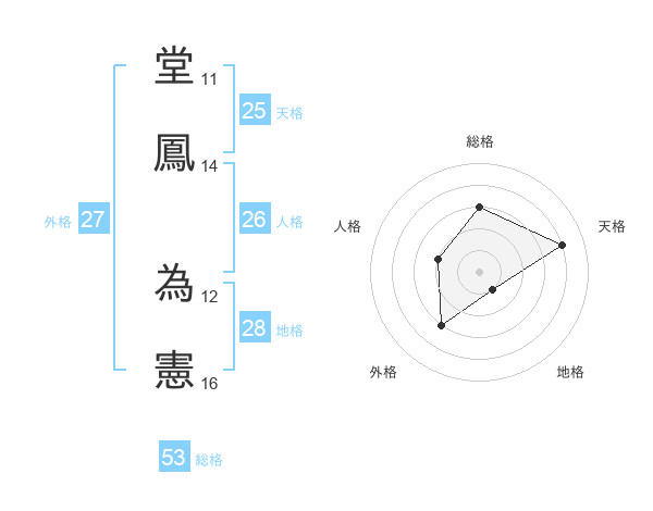 堂鳳 為憲さんを姓名の画数から五運を鑑定