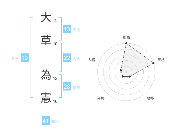 大草 為憲さんの天格は13画の5点!