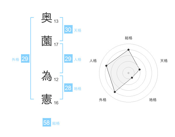 奥薗 為憲さんの総格は58画の4点!