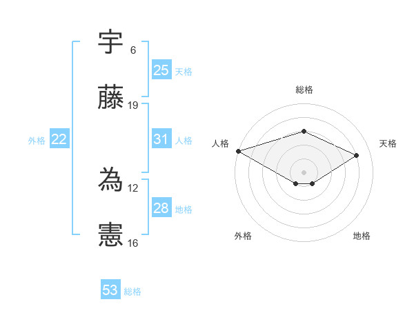 宇藤 為憲さんを姓名の画数から五運を鑑定