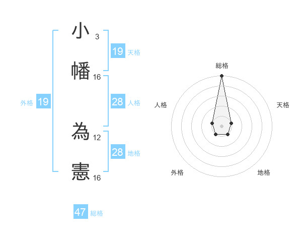 小幡 為憲さんを姓名の画数から五運を鑑定