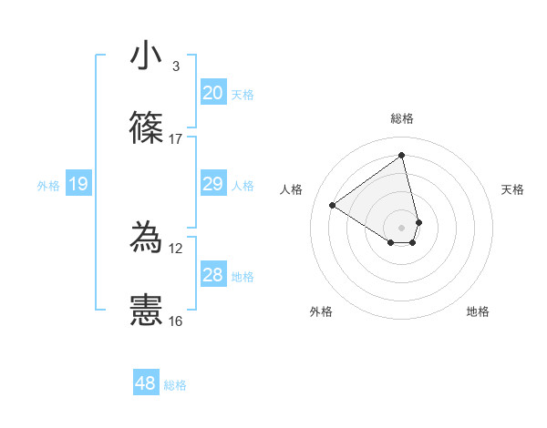 小篠 為憲さんを姓名の画数から五運を鑑定