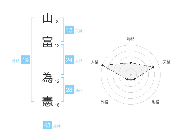 家系が持つ宿命的な運勢を表します。祖先から受け継いだ苗字ですので自分の力が及びません。家柄を象徴します。