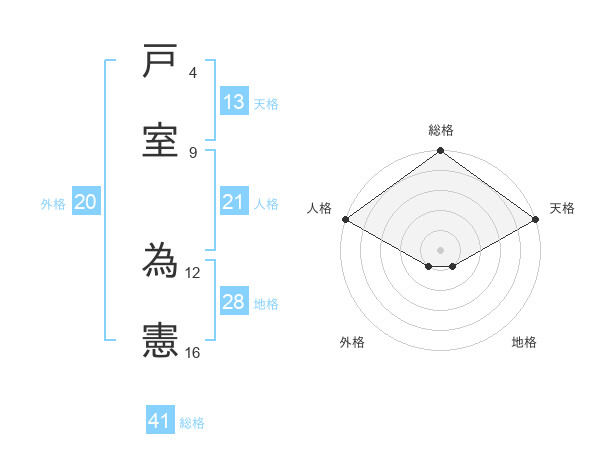 戸室 為憲さんを姓名の画数から五運を鑑定
