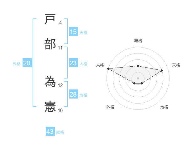 戸部 為憲さんを姓名の画数から五運を鑑定