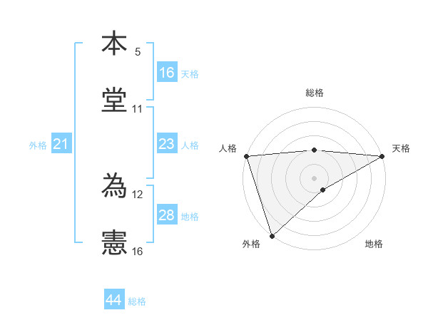 本堂 為憲さんの天格は16画の5点!