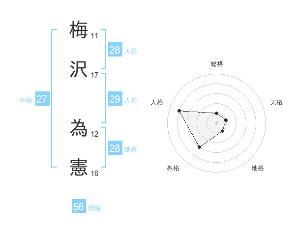 梅沢 為憲さんの地格は28画の1点!